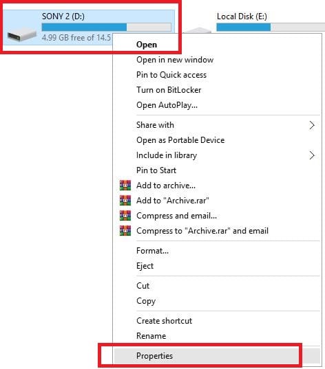 1. Plugin your USB drive, Right-click on USB (Pen-drive) and open Properties.